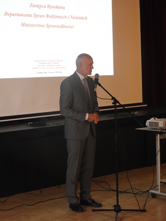 – przedstawiciel Ministerstwa Sprawiedliwości Pan Sędzia Dariusz Cieślik – Zastępca Dyrektora Departamentu Spraw Rodzinnych i Nieletnich Ministerstwa Sprawiedliwości, który przedstawił zakres prac legislacyjnych prowadzonych w Ministerstwie Sprawiedliwości dotyczących kurateli rodzinnej;