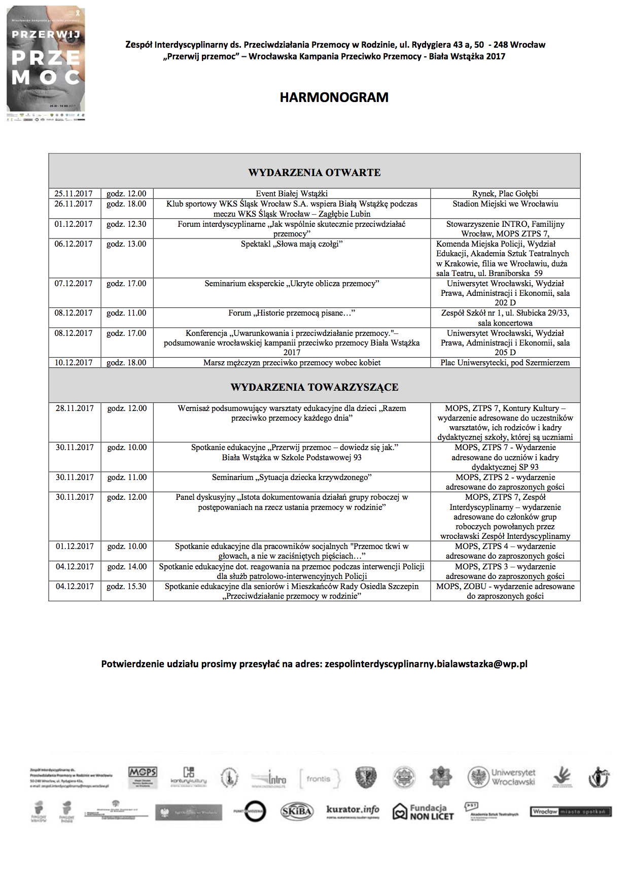 Pełny harmonogram wydarzeń Wrocławskiej Kampanii Przeciwko Przemocy Biała Wstążka 2017: