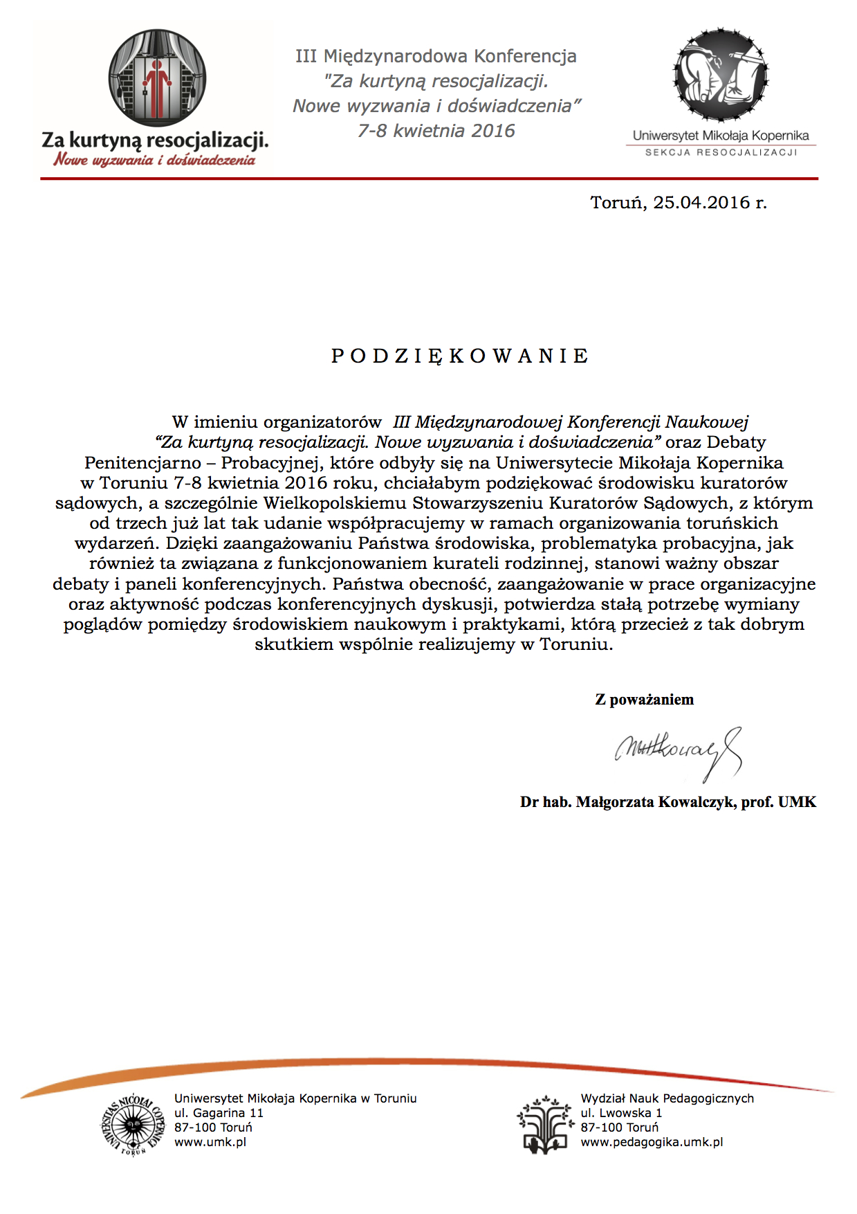 Podczas otwarcia konferencji Jego Magnificencja Rektor Pedagogium WSNS w Warszawie prof. dr hab. Marek Konopczyński podkreślił, że konferencja ma charakter środowiskowy, a wśród uczestników konferencji są osoby zaangażowane w postęp w przemianę resocjalizacji w Polsce. Przypomniał 60-letnią tradycję pedagogiki resocjalizacyjnej w Polsce i jej dynamiczny rozwój. W swojej wypowiedzi Prof. Konopczyński podkreślił, że trzy R: Resocjalizacja, Readaptacja i Reintegracja to procesy składające się na poprawną adaptację społeczną.