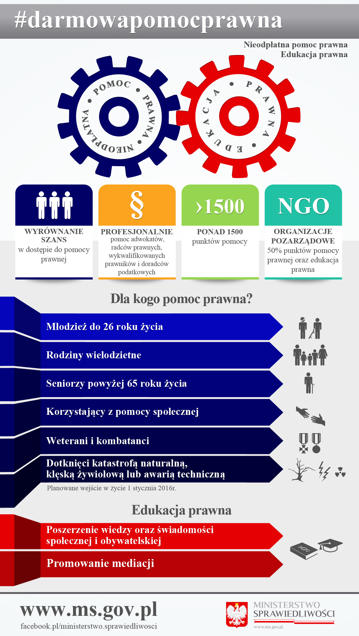 Ministerstwo Sprawiedliwości przygotowało specjalną stronę dedykowaną darmowej pomocy prawnej (kliknij żeby zobaczyć).